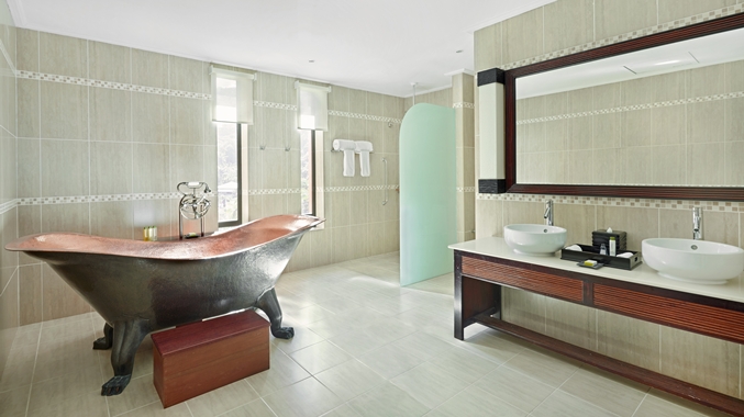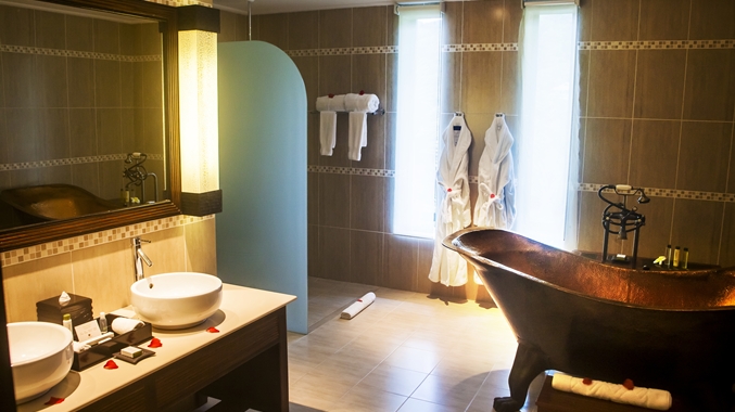 - ‘King Deluxe Ocean View’ (70 m²), toutes avec jacuzzi en terrasse à l’exception de 2 chambres avec baignoire en bronze à l'ancienne dans la salle de bains