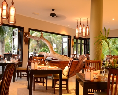 ‘Les Palms’, restaurant avec terrasse. Cuisine internationale agrémentée de saveurs créoles et de fruits de mer. Petit déjeuner buffet, déjeuner à la carte, dîner (buffet, live cooking, soirées à thème).