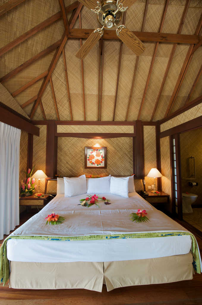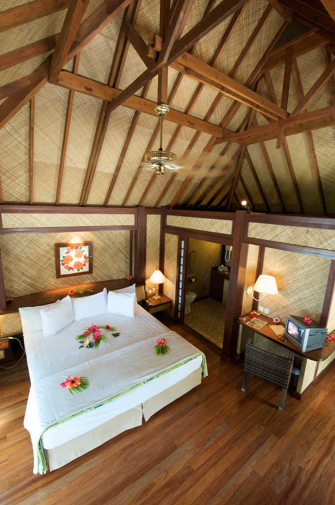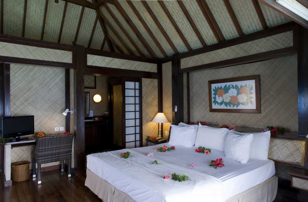 Les 13 bungalows Plage sont spacieux, situés en bord de mer et bien équipés. Des matériaux naturels comme du pandanus tressé pour le toit, du bambou tressé, des bois exotiques et rares sont utilisés et viennent compléter le style polynésien traditionnel à base de coquillages, perles et bois permettant de récréer une atmosphère chaleureuse. Situés sur la plage, la beauté du lagon translucide est à vos pieds.