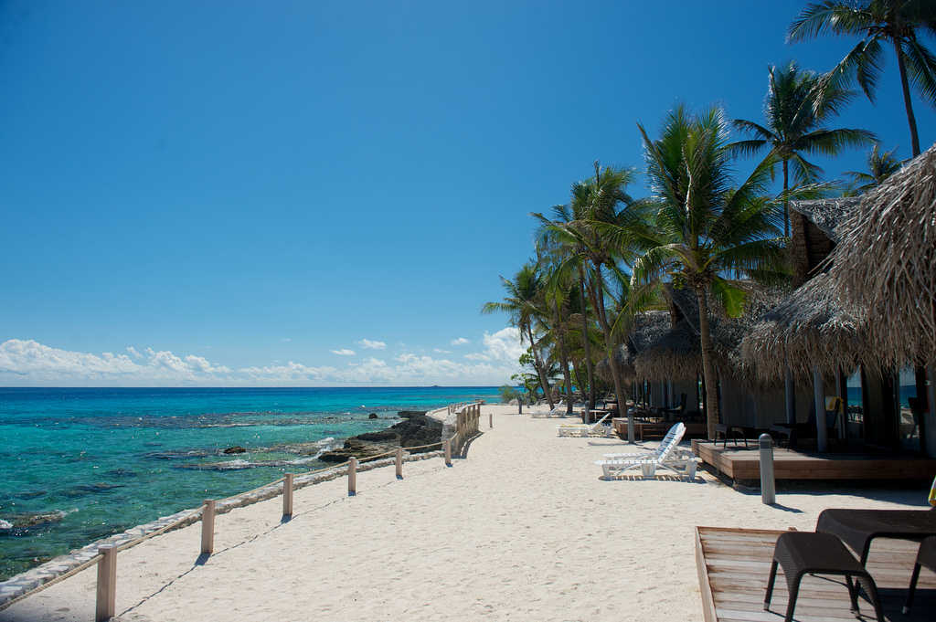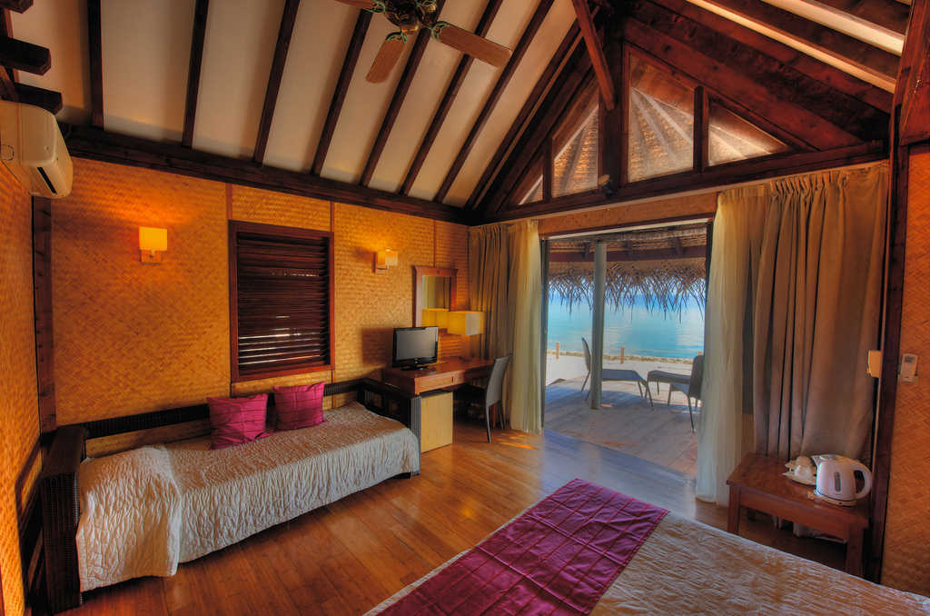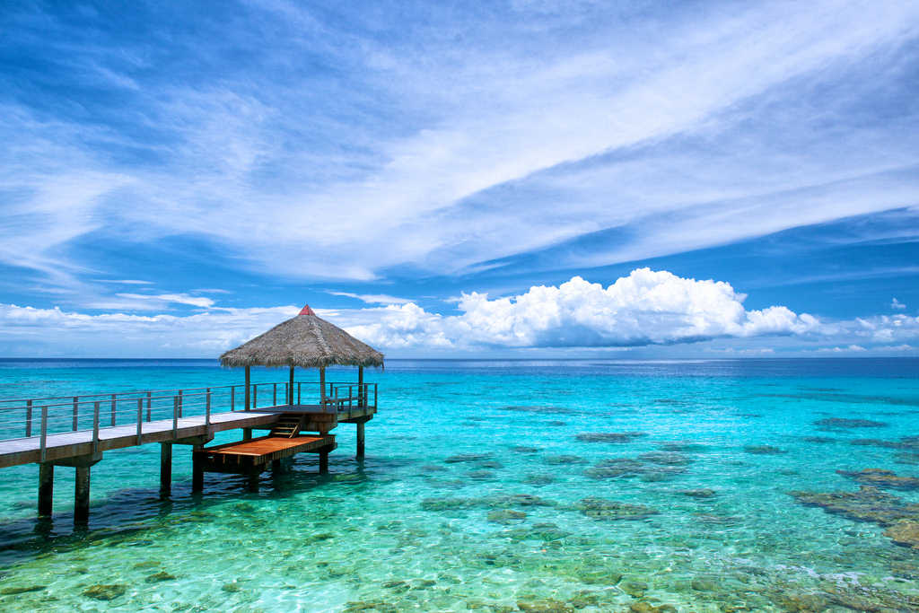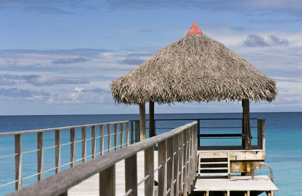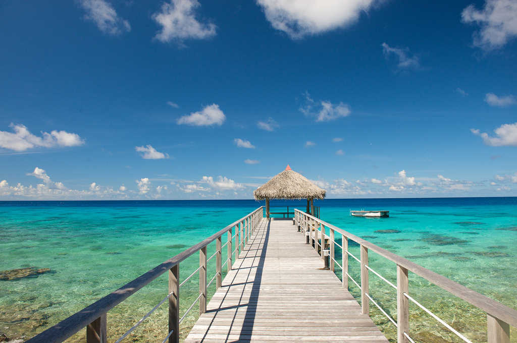 Depuis votre bungalow, vous voyez les eaux turquoise du lagon et ce magnifique dégradé de bleu.