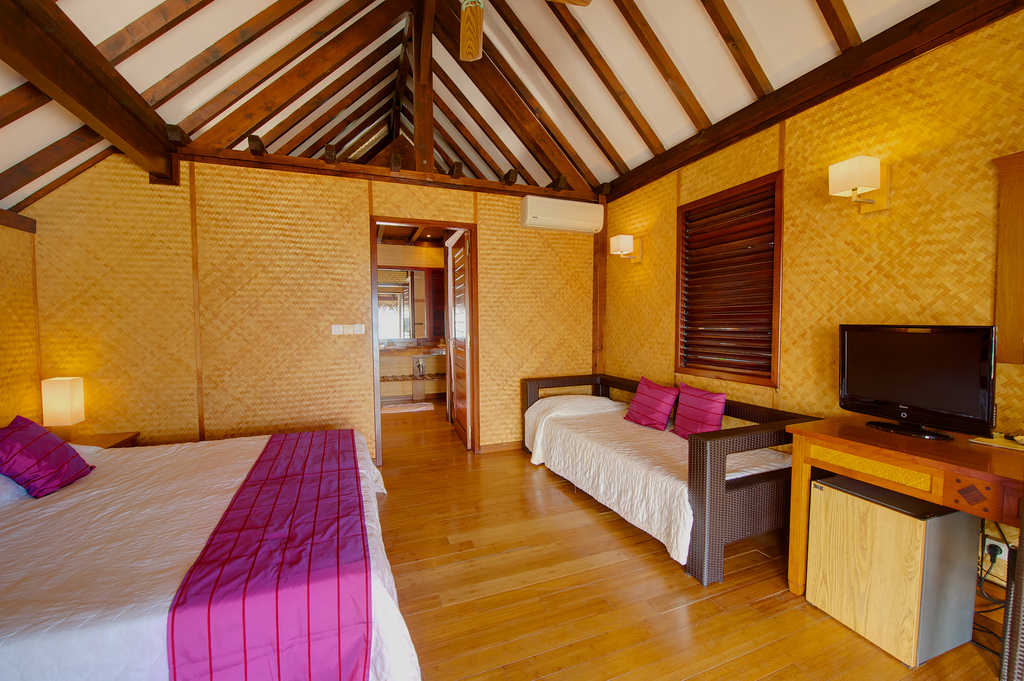Les bungalows Lagon au Maitai Rangiroa sont également équipés d’un lit sofa supplémentaire qui permet d’accueillir une troisième personne. Les bungalows sont tous équipés d'un système de climatisation.