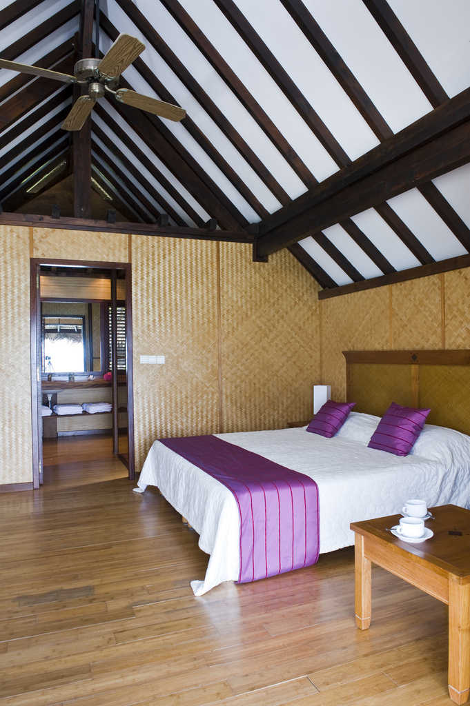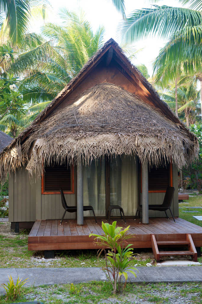 Les 10 bungalows Jardin sont spacieux et bien équipés. Des matériaux naturels comme le bois de cocotier tressé pour le toit, le bambou tressé, des bois exotiques et rares sont utilisés et viennent compléter le style polynésien traditionnel à base de coquillages, perles et bois permettant de récréer une atmosphère chaleureuse. Situés dans le jardin, profitez de votre terrasse pour admirer votre environnement.
