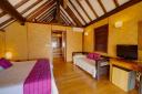 Autres équipements dans le bungalow : service à café / thé, tables de chevet, penderie, éclairage de style, table pour écrire et chaise, brasseur d’air au-dessus du lit, TV, téléphone avec ligne internationale directe, coffre-fort dans la chambre, mini-bar et salle de bain spacieuse avec douche et WC séparés, sèche-cheveux et articles de toilette gracieusement offerts.