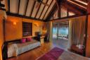 Autres équipements dans le bungalow : service à café /thé, table pour écrire et chaise, brasseur d’air au dessus du lit, coffre-fort, mini bar, TV, téléphone avec ligne internationale directe, accès internet par numérotation dans la chambre et beaucoup de place pour ranger vos affaires personnelles.