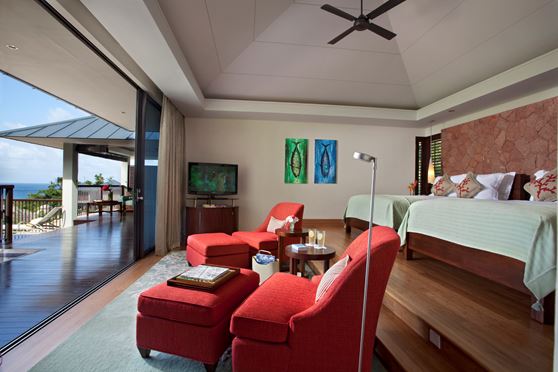 - ‘Oceanview Pool Villa’ (125 m²), avec vue sur la baie et Curieuse Island.