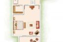 110 ‘Superior’ (50 m²) aux couleurs claires, ouvrant sur une terrasse fleurie.