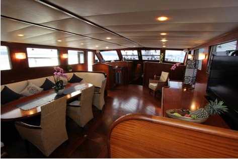 Built in 2009, this luxury ketch was refurbished by its new owbner in 2012 . It is now lavishly finished and all amenities have been changed . The comforts, artwork and accessories onboard evoke a relaxing Asian flair and atmosphere that appropriately suit the beautity of this yacht. Authentic Thai silks, art and cooking provide and tasteful experience of the culture in the area, and allow guests to feel at peace on board.