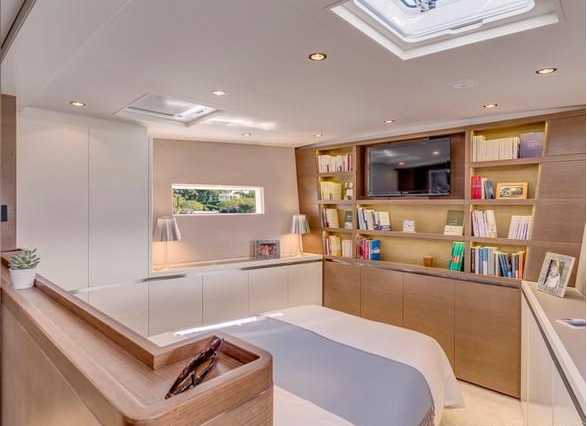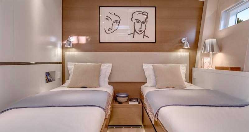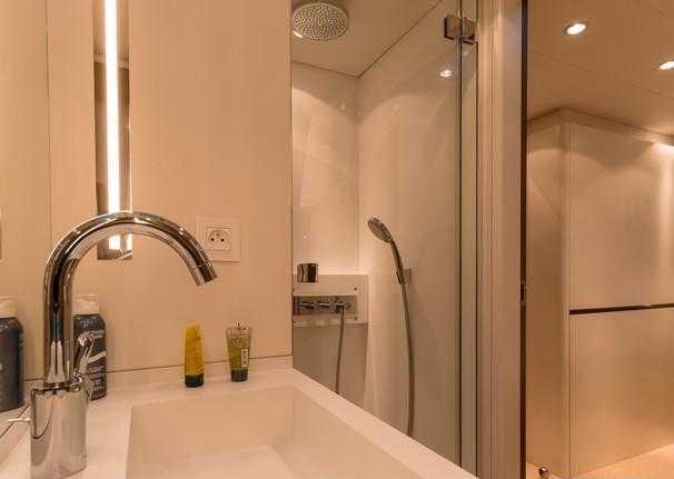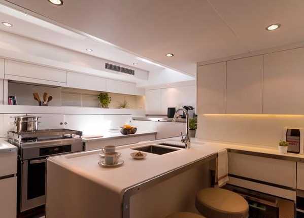 The crew area is concentrated at the rear with a large, convivial and well equipped kitchen, including a good wine store. This is a very quiet boat, the layout and insulation of machines has been thought out to provide perfect acoustic comfort.