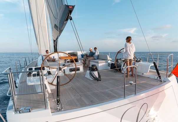 LEO is a brand new model of sailboat built by CNB. Very fast in the slightest breath of air thanks to its carbon rigging, D4 carbon Aramide sails and its modern hull designed by Philippe Briand - it is very comfortable both under sail and at anchor.