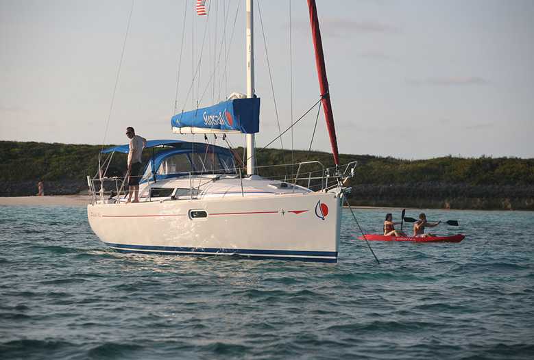 Le Sunsail 36i, dessiné par Marc Lombard, se démarque par ses lignes modernes, son plan de voile performant lié à un profil de quille à haut rendement et son intérieur très spacieux. La minutieuse conception des coques garantit de jolies performances aussi bien sous voile qu’au moteur. La grande barre à roue gainée de cuir permet une navigation en toute finesse.