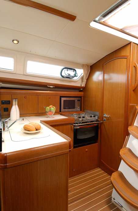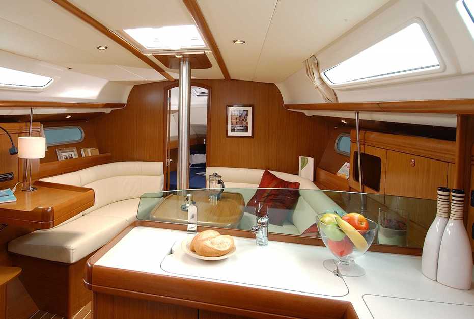 Ce voilier est disponible avec deux plans d'aménagements différents, utilisant l'un comme l'autre des matériaux de toute première qualité. Aérés et accueillants, ils offrent tous les équipements d’un grand bateau de croisière pour vous faciliter la vie à bord, avec, entre autres, une cuisine moderne et une table à cartes coulissante .