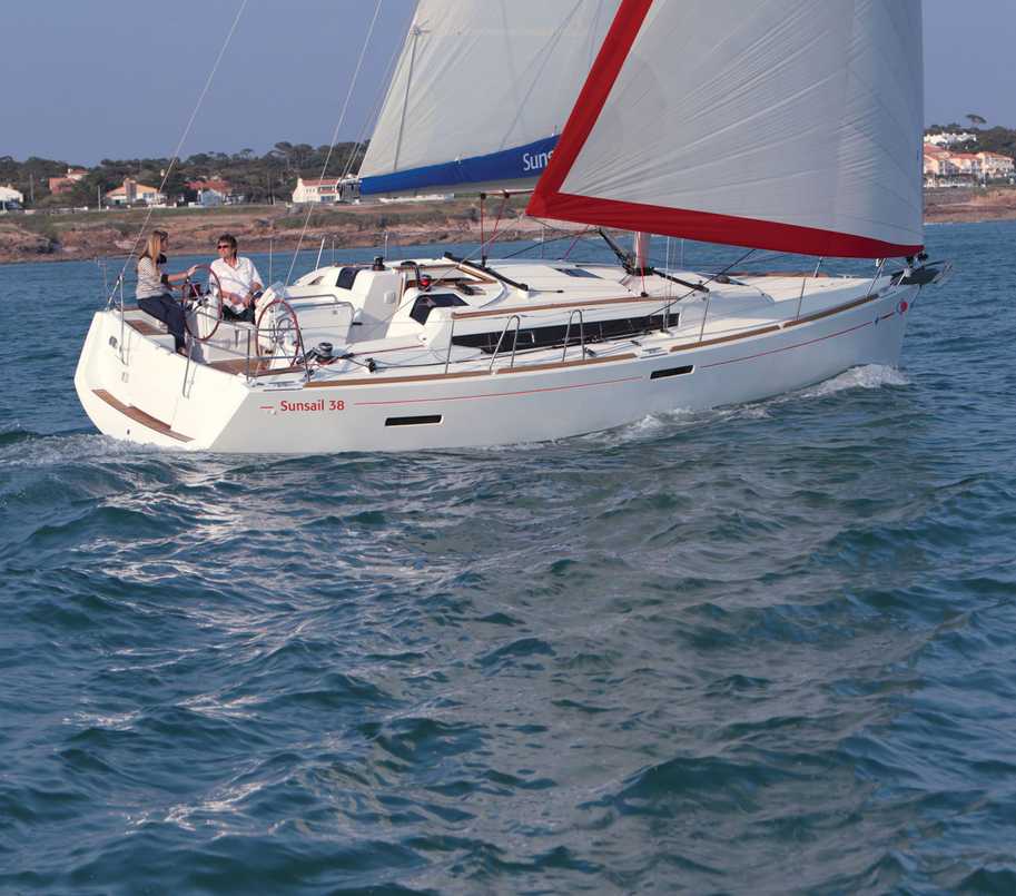 Avec 2 cabines et un cabinet de toilette, le tout nouveau Sunsail 38 est un spacieux voilier de croisière au caractère sportif conçu par Marc Lombard, et construit par Jeanneau sur la base du célèbre Sunsail 41 qui a été élu «Croiseur Européen de l'Année".