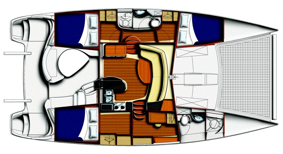 À l’intérieur, vous apprécierez le grand carré, la cuisine orientée vers l’arrière et un bar. Sa vitesse sur l’eau et sa manœuvrabilité liées un excellent système de mouillage et à une ventilation parfaite lui ont valu le titre de “Bateau de l’Année 2005” décerné par la revue “Cruising World”. Nous sommes convaincus que vous serez séduits par l’arrivée du Sunsail 403 dans notre flotte.