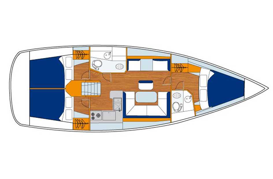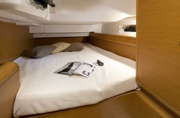 Le Sun Odyssey 409 / Sunsail 41 a clairement séduit le jury européen grâce à un look très élégant. Le bouchain progressif visible sur l’arrière ou le dessin des longs hublots de roof donnent du muscle à la silhouette. Le coup d’œil est également flatté sous le pont, où l’impression d’espace est importante tout en maintenant une ambiance chaleureuse. Les longs hublots sont les bienvenus au niveau du carré dont la table se déplie astucieusement de part et d’autre d’un pied central qui fait office de bar et qui peut s’abaisser pour former un lit double.