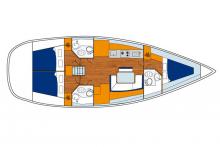 Sur le pont, la double barre à roue facilite les manœuvres, ainsi que l’accès à la plateforme de bain. Le gréement fractionné moderne, la grand voile principale et le génois, confèrent à ce bateau des performances exceptionnelles, qui raviront autant les navigateurs expérimentés que les novices.