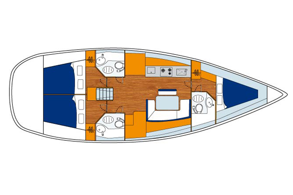 Ce 43 pieds est exceptionnellement spacieux et compte 3 grandes cabines de dimensions égales, chacune avec un cabinet de toilette, faisant de ce voilier le choix idéal pour un groupe de couples ou d’amis.