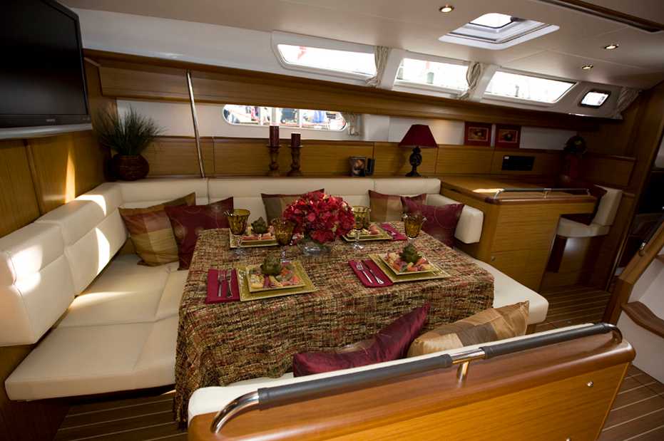 A l’intérieur, les aménagements offrent quatre cabines indépendantes ayant chacune leur propre salle d'eau. Le grand carré et la cuisine en ligne située à bâbord rendent la vie à bord très agréable.