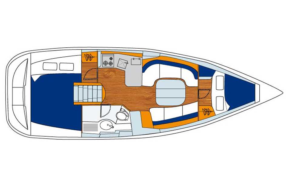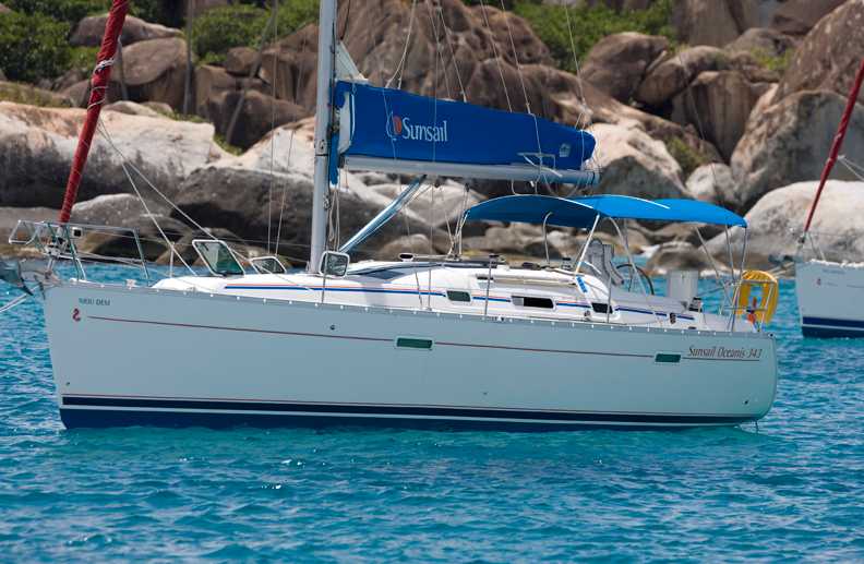 Dans la flotte Sunsail, l’Océanis 343 est disponible en version 2 ou 3cabines. Dans la version 2 cabines, le cabinet de toilette dispose d'une grande cabine de douche séparée, et dans les deux versions, la hauteur sous barrot offre plus d’espace intérieur.