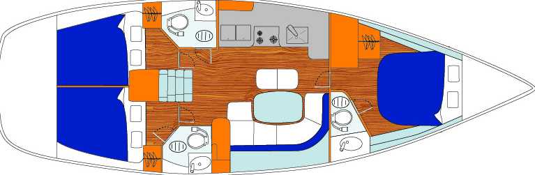 Ce voilier dispose de doubles cabines, chacune avec salle de bain attenante, synonymes d’intimité et d’espace pour tout le monde à bord.