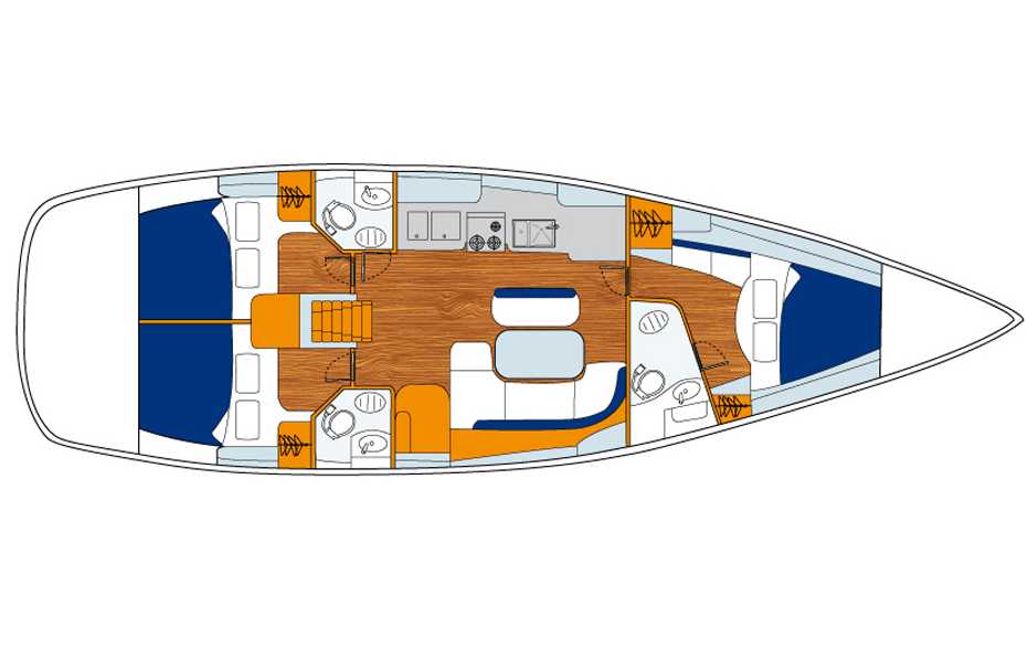 La flotte compte également la version 3 cabines, avec deux cabinets de toilette et douche, ainsi que la version 4 cabines, avec 3 cabinets de toilette. Quelle que soit la version que vous choisirez, vous trouverez ce voilier très spacieux