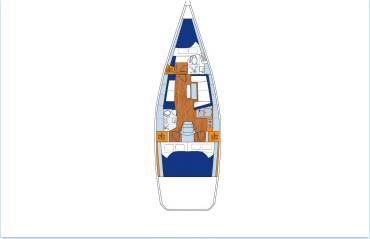La version trois cabine de ce bateau avec une grand-voile classique offre des performances grisantes. La double barre à roue aide le skipper dans les endroits un peu délicats et permet d'occuper les enfants!