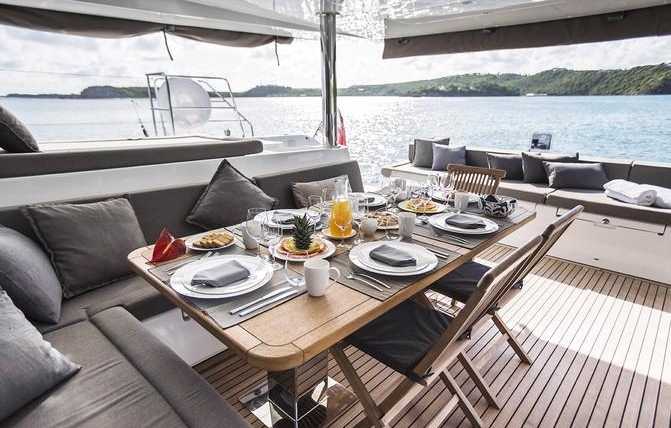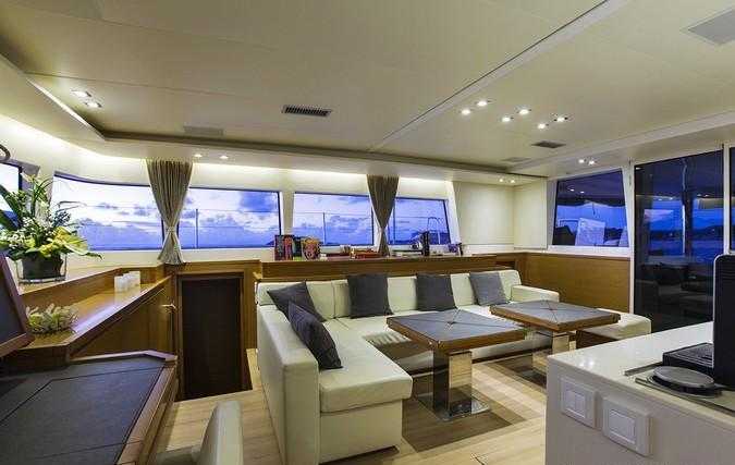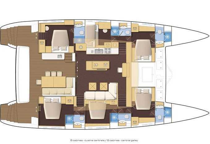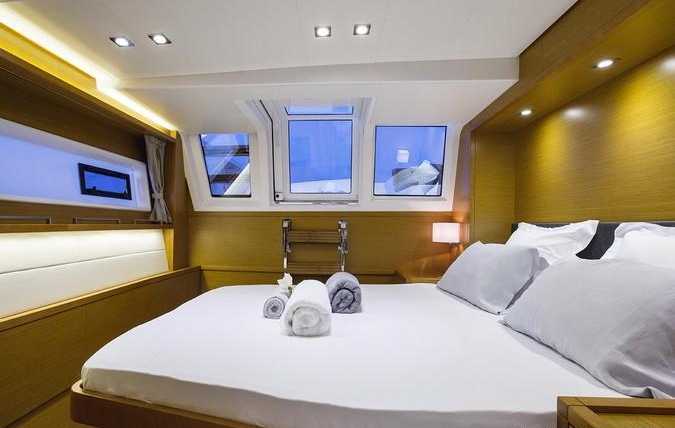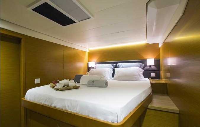 VACOA, Lagoon 620 launched in Spring 2014, accomodates 10 guests in 5 double cabins (queen beds) with ensuite bathroom and separate shower. She has numerous high quality equipment (bedding, crockery, decoration, Bose system, home cinema, playstation, games, ect) and is the ideal boat for family or groups looking for a luxurious, comfortable and fast catamaran.